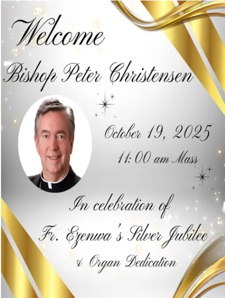 10-19-2025: A Mass celebrated by Bishop Peter, and concelebrated by several priests from local parishes, honored Fr. Hippolytus Ezenwa for 25 years of priestly service to the church. The Mass was celebrated at Sacred Heart church in Boise, and was followed by a lunch in the dining room.